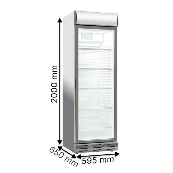 Компактний торговельний холодильник Klimasan D372 (Туреччина) об'ємом 382 літри для зберігання та демонстрації напоїв. Вміщує до 467 банок 0,33 л або 217 пляшок 0,5 л — підходить для барів, кафе, магазинів та торгових точок з обмеженою площею.