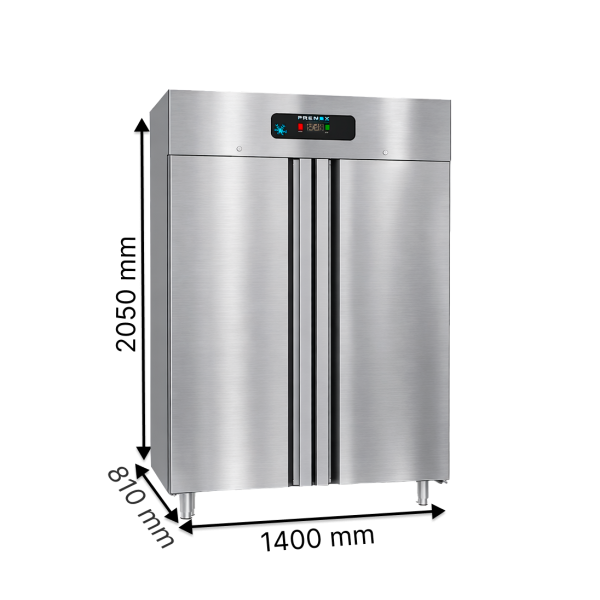 Двудверна вертикальна морозильна шафа FRENOX BL14-M-R290 об'ємом 1400 літрів із нержавіючої сталі для надійного зберігання м'ясних та рибних напівфабрикатів, заморожених овочів, фруктів та іншої продукції. Підходить для ресторанів, кафе, супермаркетів та складських приміщень. Доступна покупка в розстрочку — уточнюйте умови у менеджера.