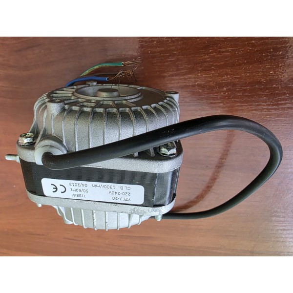 Оригінальний однофазний електродвигун із затіненими полюсами YZF 7-20 виробництва Hangzhou Weiguang Electronic (Китай). Використовується як привід вентилятора обдування в комерційних холодильних системах. Новий, готовий до встановлення без доопрацювань.