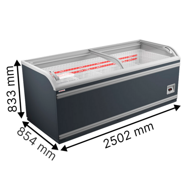 Морозильный ларь модели PARIS предлагает современный подход к экономии энергии и качественной демонстрации товаров. Этот бонет оснащен встроенным освещением и панорамными раздвижными стеклянными крышками. В комбинации с торцевым модулем Miami 250 ларь создает функциональный остров для замороженной продукции, что позволяет использовать над ним стеллажные конструкции для увеличения полезной площади и ассортимента товаров.