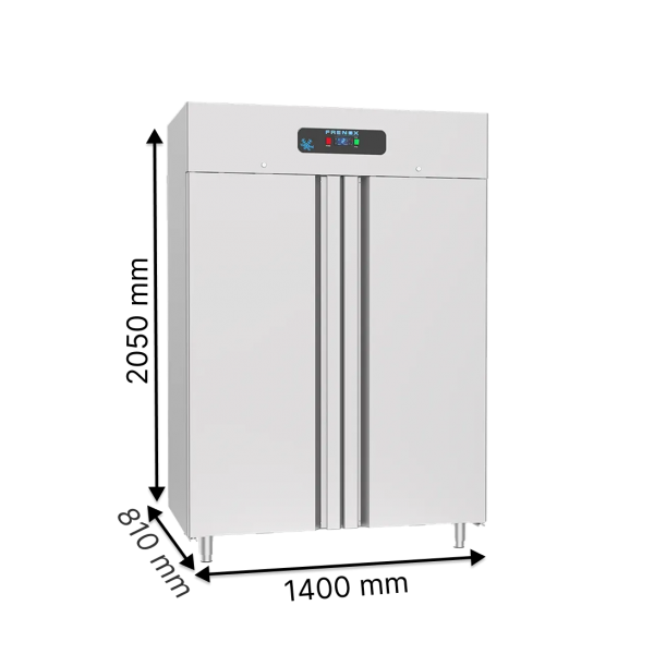 Двухдверный вертикальный морозильный шкаф FRENOX BL14-M-R290 объёмом 1400 литров из нержавеющей стали для надёжного хранения мясных и рыбных полуфабрикатов, замороженных овощей, фруктов и другой продукции. Подходит для ресторанов, кафе, супермаркетов и складских помещений. Доступна покупка в рассрочку — уточняйте условия у менеджера.