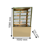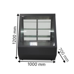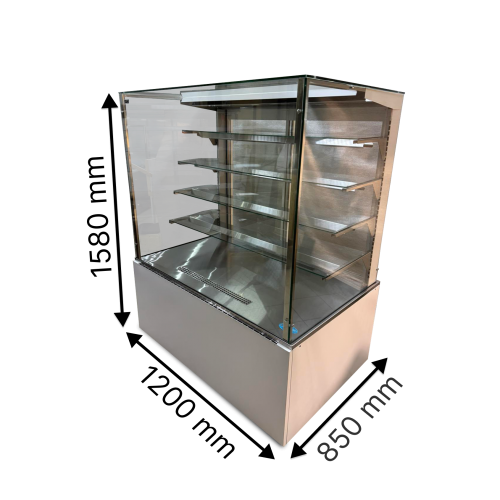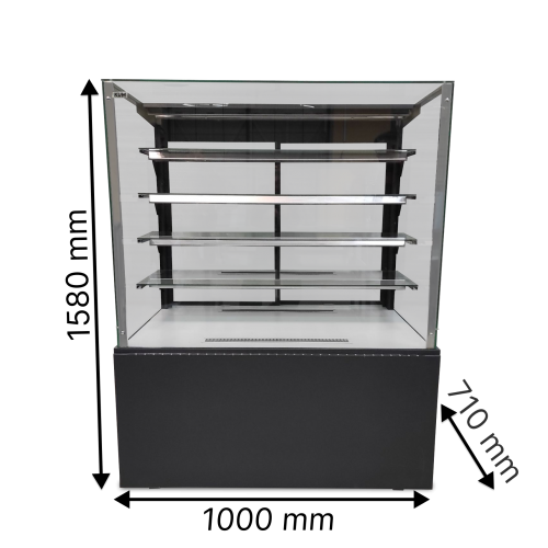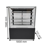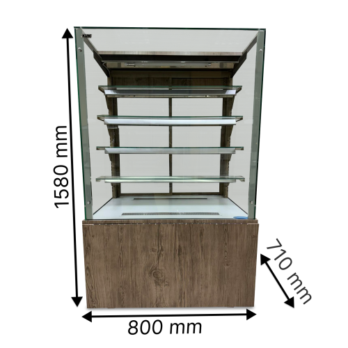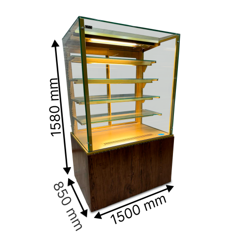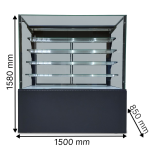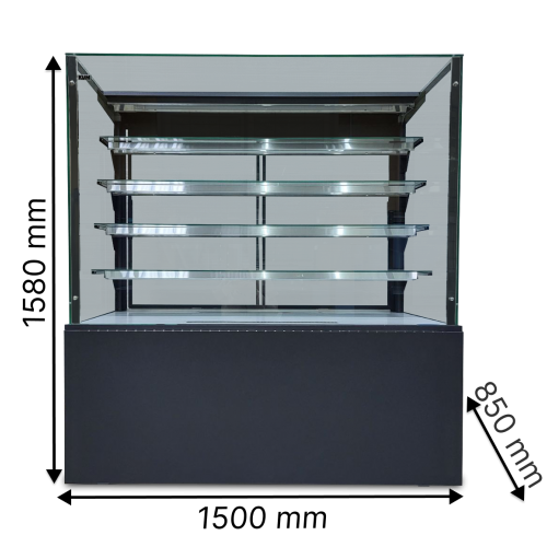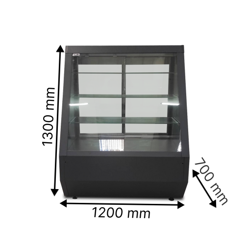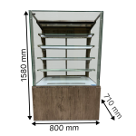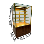 - Прямые витрины — с прямым вертикальным или наклонным стеклом. Универсальный выбор для булочных, пекарен, кафе. Часто используются в линейной выкладке.